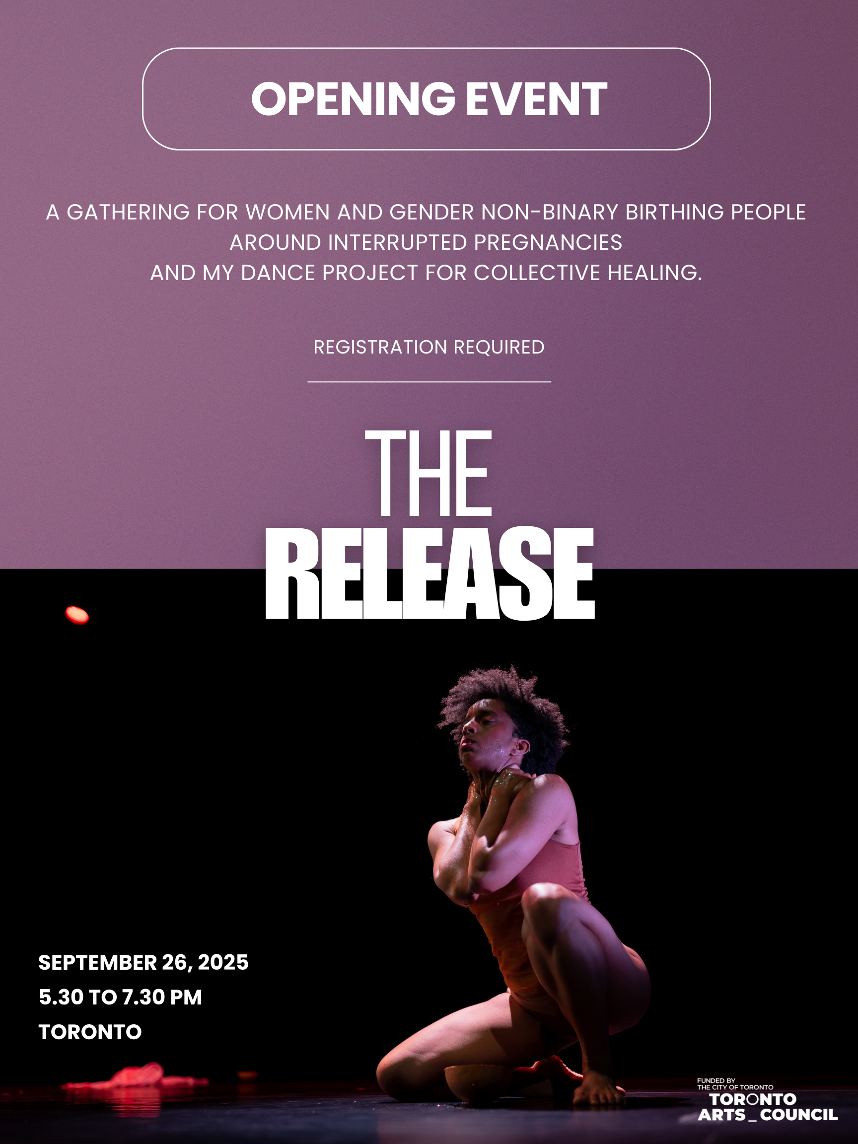 The Toronto Arts Council has graced me with a grant to continue my dance piece, The Release, about healing the decision to interrupt a pregnancy. I greatly appreciate the support and invite women and gender non-binary birthing people to a first gathering to hear about this project on September 26, 2025.